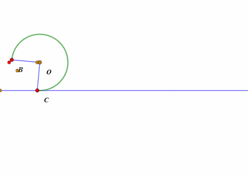 然后就是扇形的圆弧贴着直线滚动了。