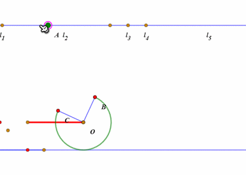 模拟滚动的情景,可以有两种方法,但是要绘制轨迹,就不得不减少一种方法。网络画板构造轨迹,必须有主动点和目标元素两个几何图形。