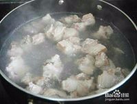 首先,锅中水烧开后,倒入洗好的排骨,再次煮沸即可捞出