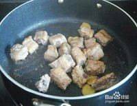 随后,倒入排骨,并转中火翻炒均匀