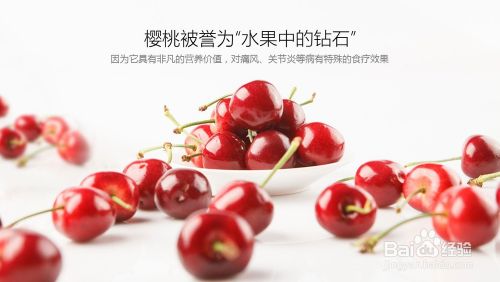 3.烟台大樱桃 烟台大樱桃素以“北方春果第一枝”闻名,娇艳欲滴、晶莹剔透,香甜可口,富含营养,无农药残留,被誉为“果中珍品”、“水果之冠”,具有极高的营养价值和商品价值。大樱桃中含蛋白质,钙磷,铁以及多种维生素。果实性味甘温,有调中益脾之功,对调气活血、平肝去热有较好疗效,并有促进血红蛋白的再生作用,对贫血患者、老年人骨质疏松、儿童缺钙、缺铁均有一定的辅助治疗作用,深受消费者青睐。烟台大樱桃一般在每年5月中下旬即采摘上市,想要品尝的朋友记得要来啊。