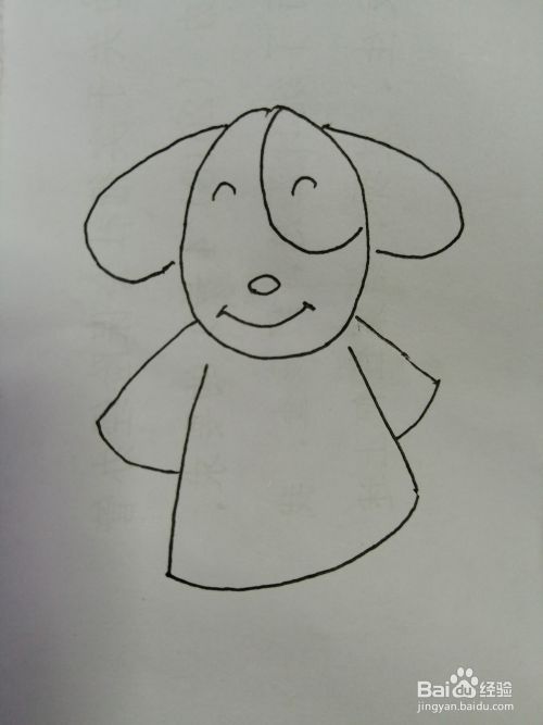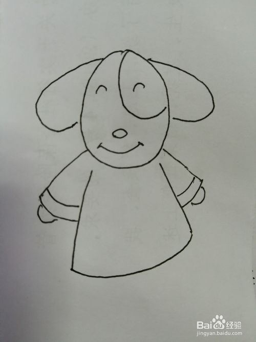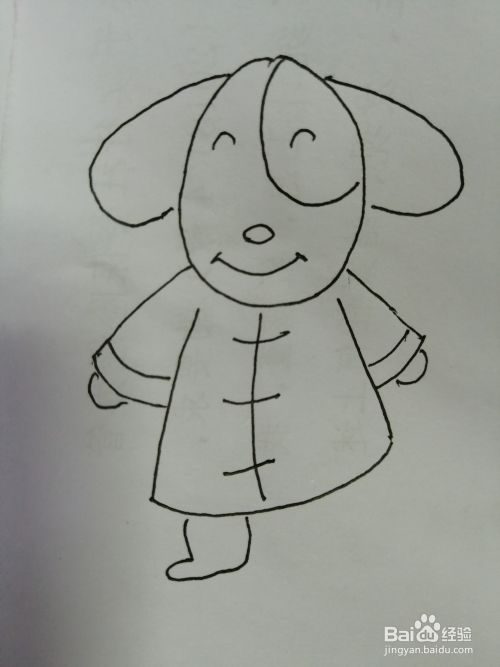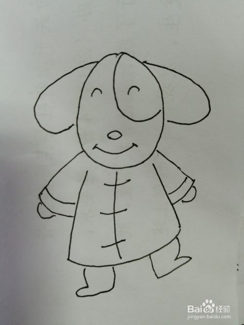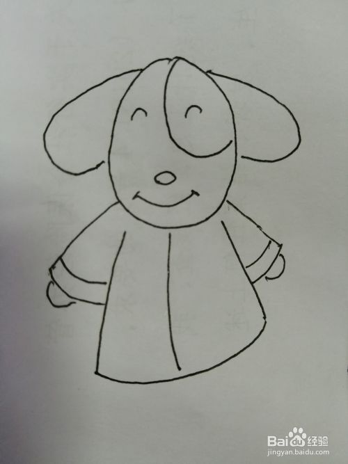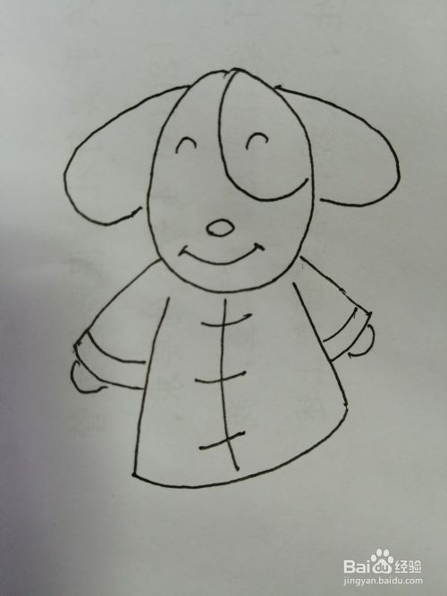 第六步,然后在可爱的小狗的衣服上面画出几条横线和一条竖线。