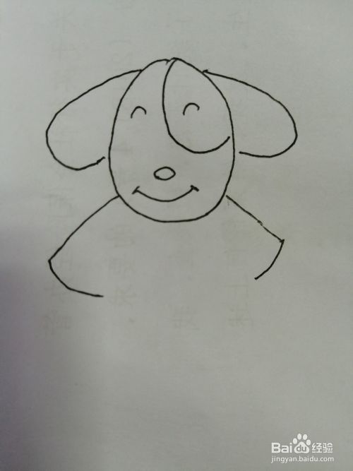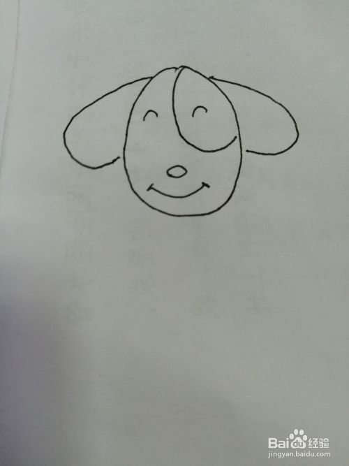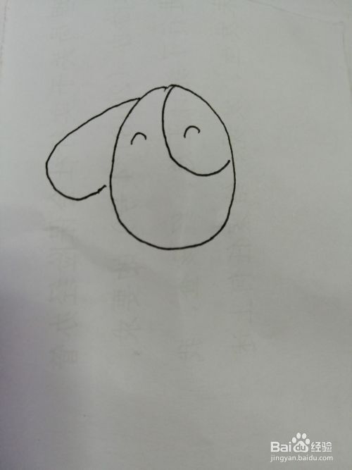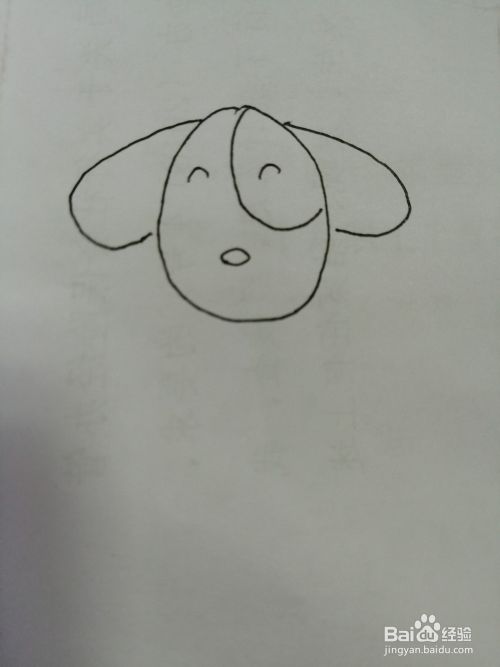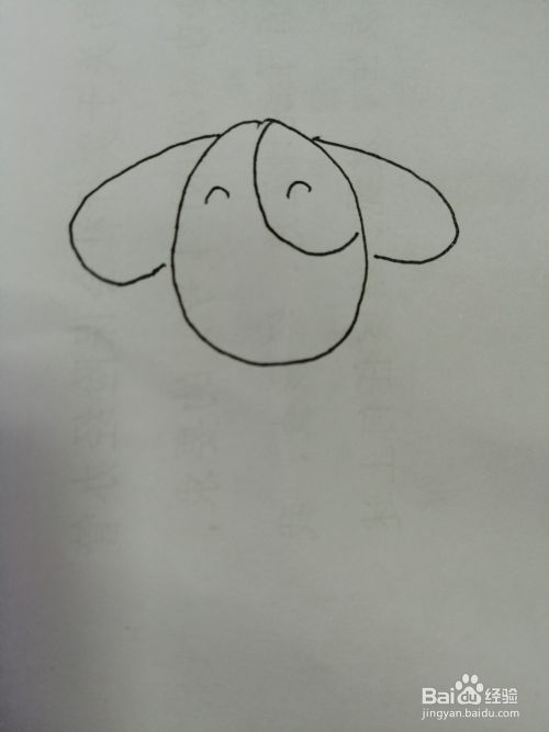 第二步,接着在小狗的头部两边画出两只大耳朵,在小狗弧线两边画出弯弯眼睛。