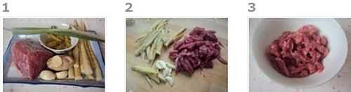 3牛肉用淀粉、料酒、生抽腌半小时。