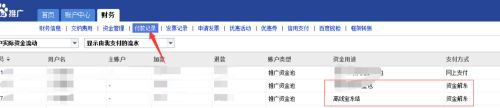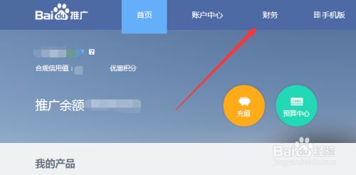 来到推广账户首页,点击最上方的财务,这里可以查看资金的流动。