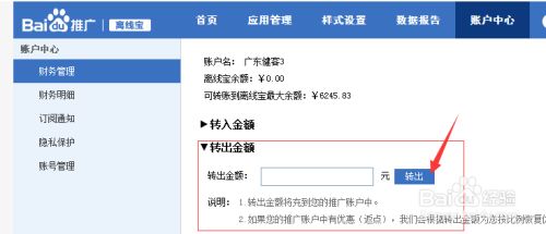 然后会出现让输入转出的金额,完了点击转出,这样余额就转到账户中去了。