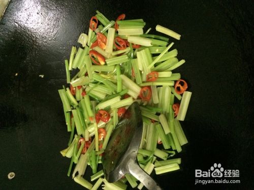 然后才是炒芹菜,翻炒芹菜一会后,放肉下去,如下图所示。