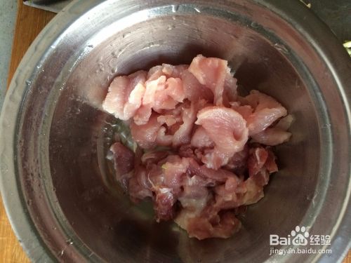 先准备好材料,芹菜洗好,切好,肉也是一样,如下图所示。