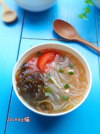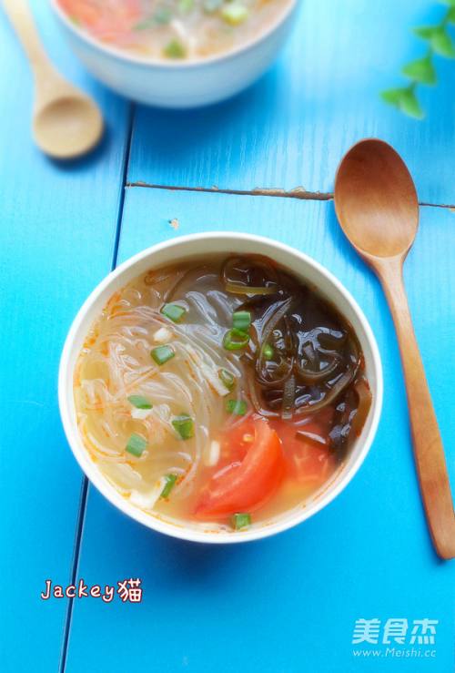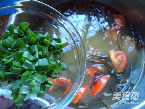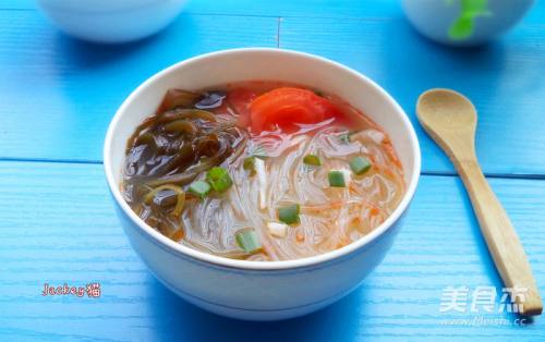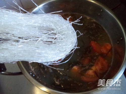 7当锅内的汤沸腾后,把粉丝放入(注:粉丝不用事先泡发,只需用水冲洗一下就好
