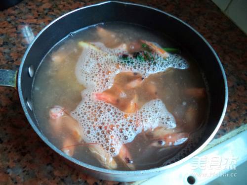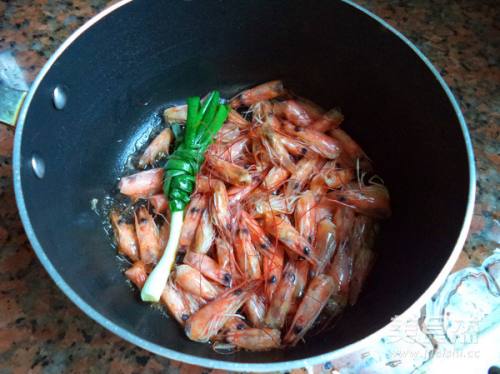 1锅内放少许油,爆香葱姜后,下虾头煸炒出香味