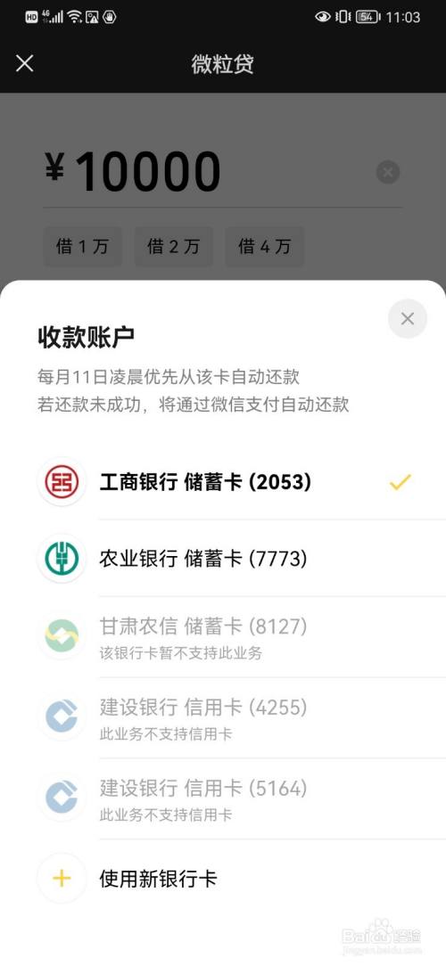点击借钱,输入金额,选择好借款期数和收款账户,再点击下一步。