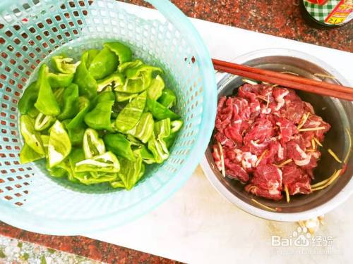 所需盐分,在腌制牛肉的时候放足量,炒青椒之时为保持青椒的甜味,一般不再加盐。