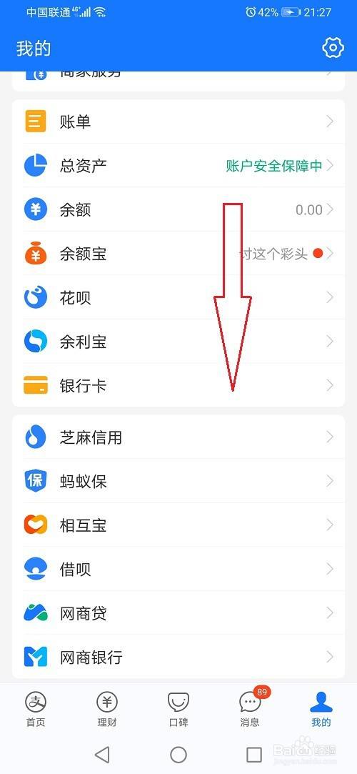 第二步进去支付宝我的界面之后,然后下滑到底部