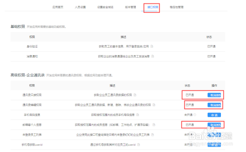 4、创建完成后申请权限,这里的权限可以根据自己要用到的实际情况申请。