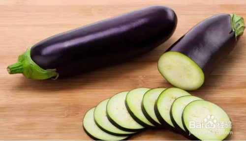 备好两根长紫茄洗净切成大概5厘米左右厚度的茄片,准备好材料