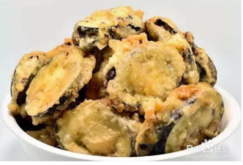 起锅热油,油热到七成时,用筷子一个一个的夹着茄片往锅里放