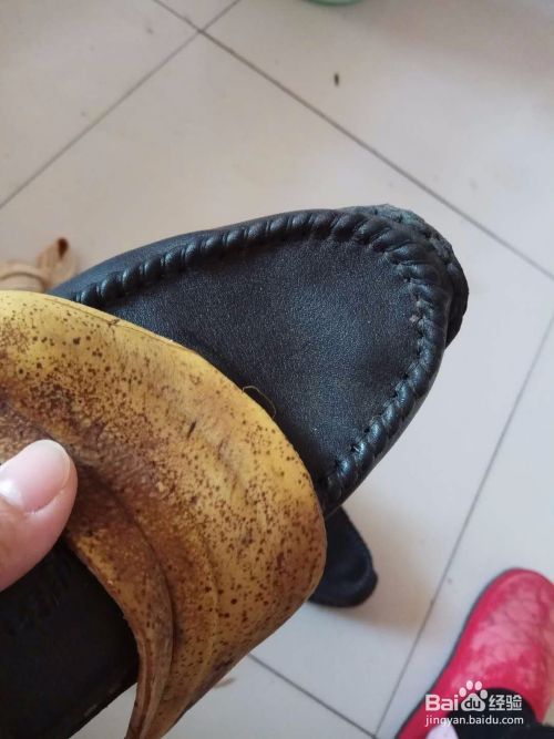 然后我们就可以拿香蕉皮里面的那一面,来擦我们的皮鞋,最好皮鞋的所有地方都擦到