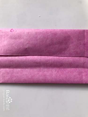 第三步 对折完成之后 从上向下再对折一遍 然后再把它竖起来 双折边在左边 再从下向上对折 画上自己喜欢的花纹样