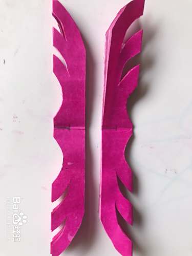 第四步 画完花纹样之后 再把需要减去的部分涂实 然后再把另一张彩纸按同样的方法步骤再折叠一遍画好