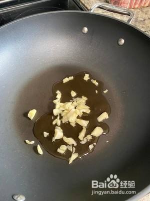 开大火烧热,放入蒜蓉炒香。