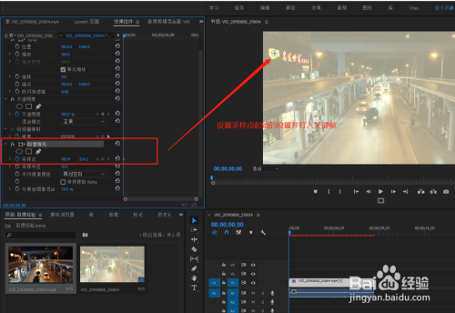 选中时间轴中的视频对象,打开效果控件,找到吸管填充效果设置,设置不透明度参数,这里参数设置合适即可,可以看到视频画面。
