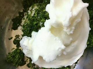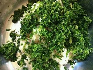 荠菜清洗干净,放入开水中,焯水,过凉水,剁碎。