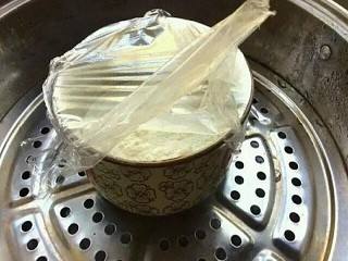 面粉盖上保鲜膜,放入蒸锅中,蒸熟。