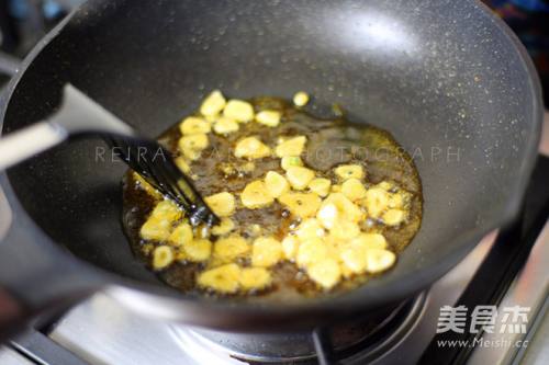 4时间略长一点也没关系,要煸至虾头都酥脆为止再盛出备用;