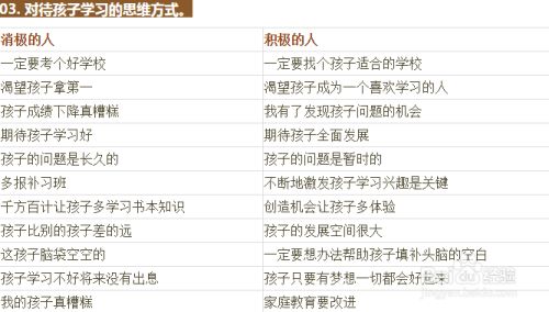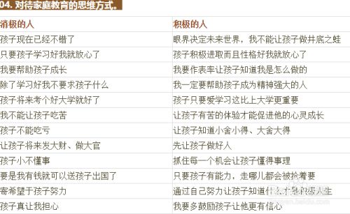 思维决定命运,思维决定心态,思维决定教育方式,思维影响孩子的前途。积极思维的人容易培育出积极思维的孩子,消极思维的人容易造就消极思维的孩子。下面我们就来看看消极的人和积极的人思维方式有何不同。