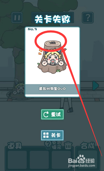 这时,系统会提示过关失败,并出现一个树桩,树桩上面有只独角仙,点击一下,收获独角仙,系统会自动跳回最左边场景,可以继续游戏。