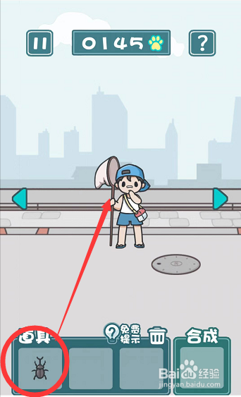 再回到中间场景,将独角仙给小男孩,小男孩会给一个网,将网放入道具箱