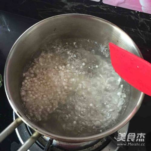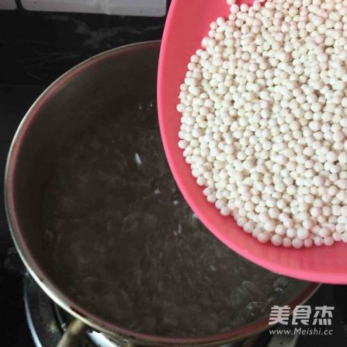 1锅里烧开水,水要放多些,西米很难煮,所以要煮时间稍微长点,倒入西米