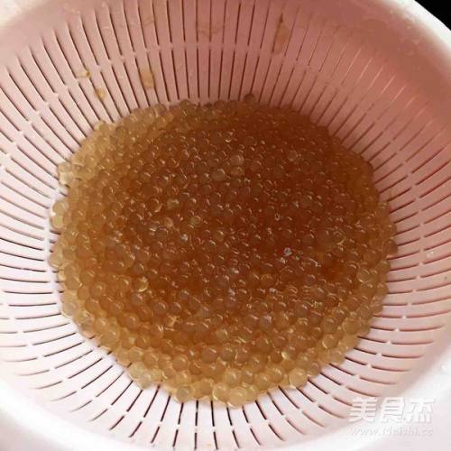 3搅拌至西米中间剩下一点点白心后关火焖10分钟,焖至完全透明,过凉水捞出备用