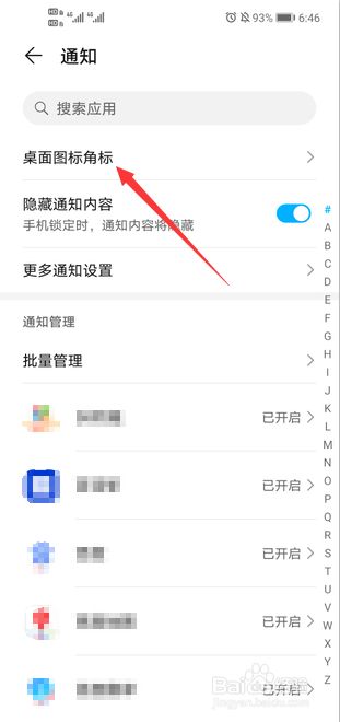 打开“设置”菜单,并依次点击“通知-桌面图标角标”进入桌面图标的角标设置。