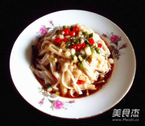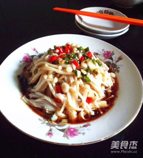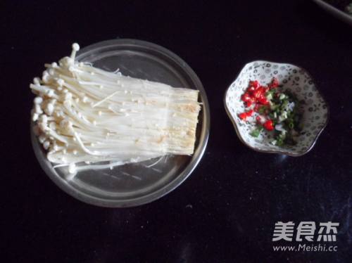 材料:金针菇、葱花、红尖椒圈。
