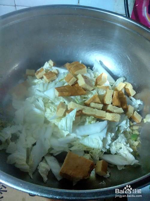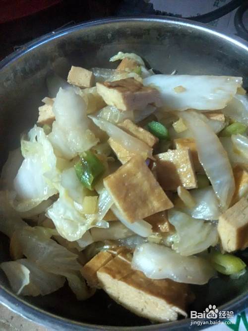 等将白菜片炒熟后,再放入酥鸡块,炒一会儿。再炒一分钟或者两分钟。关火!放入盐,酱油,十三香。拌匀!出锅!盛盆!吃饭了!