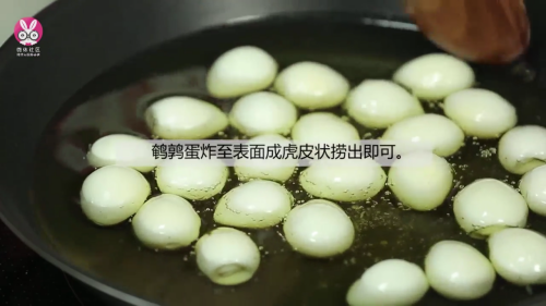 放入鹌鹑蛋炸至表面称虎皮状捞出即可。