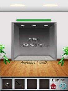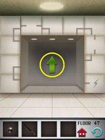 第五十关,电梯门上挂了一个敲门的牌子,地上写着Anybodyhome(有人在家吗)?当你点击牌子的时候,发现电梯门上方的进度条有动静了,多点几次进度会增多,这下明白了吧。赶快拿起手指一阵狂点吧,知道电梯门打开。