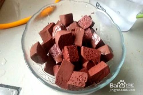 先把猪血切成豆腐块状,用清水浸泡10分钟左右的时间后捞出。