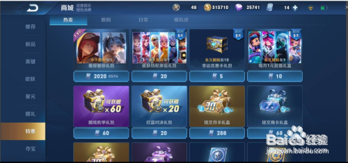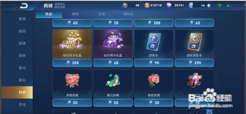 打开王者荣耀,点击游戏主页面右上角的商城,进入游戏商城,点击左下角的特惠,打开热卖商品,买钻石礼盒,就可以获得钻石。