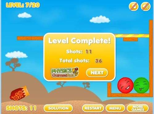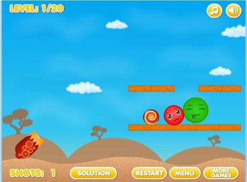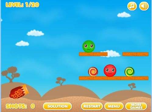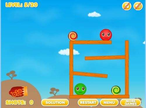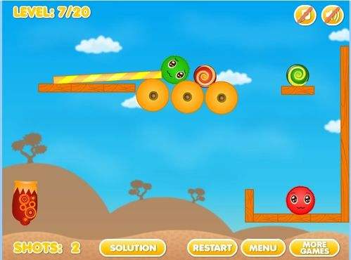 十分有趣的益智物理类小游戏,控制大炮射击小球使相同颜色的两个小球相接触融合,即可过关。