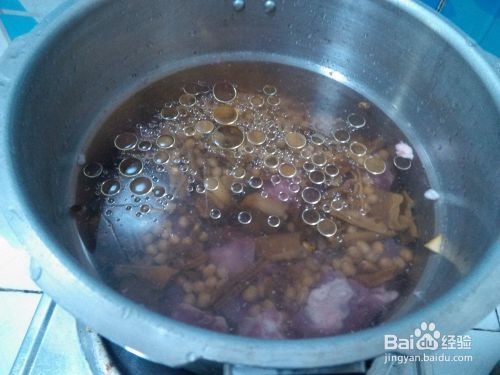 把黄豆和笋干一起放到锅里,然后加入适量的油盐。