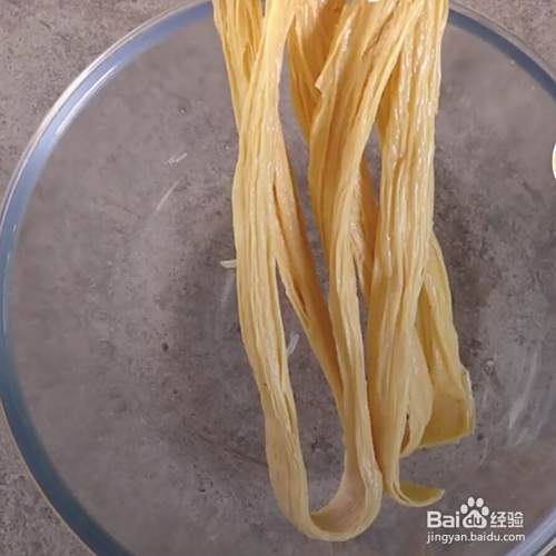 准备腐竹4条。折小段、清水适量。泡发至无硬心。