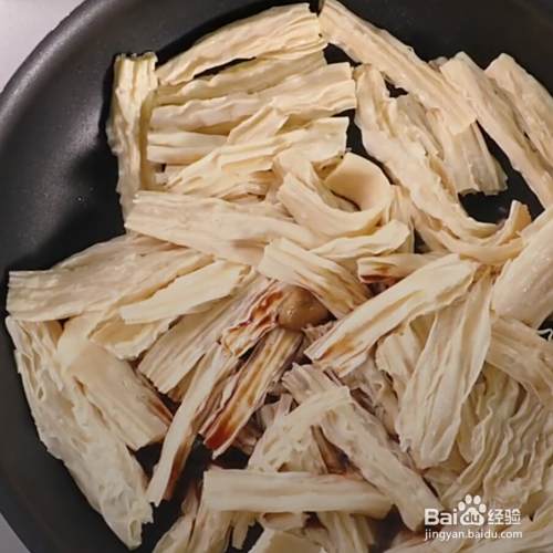 倒入腐竹。