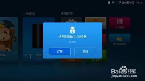 2、将U盘插到智能电视或盒子的USB接口上面,检测到新的USB设备并打开,如果没有弹出对话框,选择「高清播放器」,找到U盘设备,点击安装。