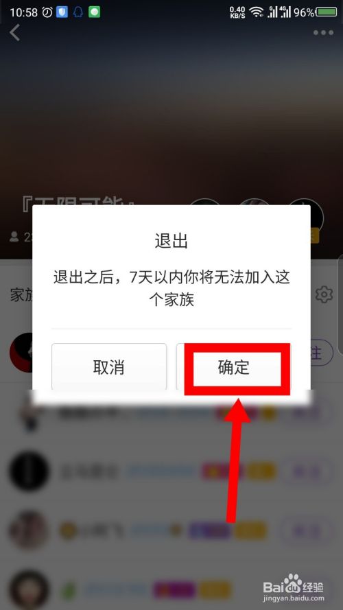 然后会弹出退出确定窗口,点击确定就可以退出家族了。如图