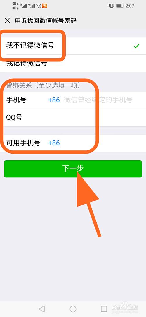 进入申诉页面,点击【我不记得微信号】,并填写相关信息,点击【下一步】;