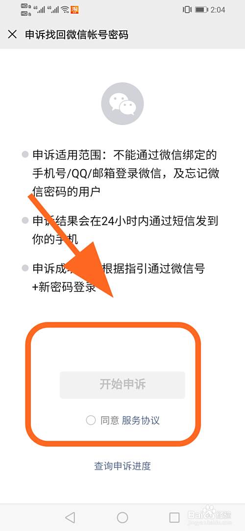 跳转注意事项,点击【同意协议】并点击【开始申诉】;