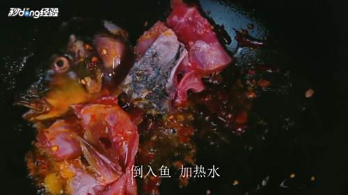 3锅烧热倒油,放麻椒、干辣椒,将蒜片、姜片和豆瓣酱倒入锅中,倒入鱼,加热水,将鱼肉放入锅中,煮至鱼片变色至熟即可。