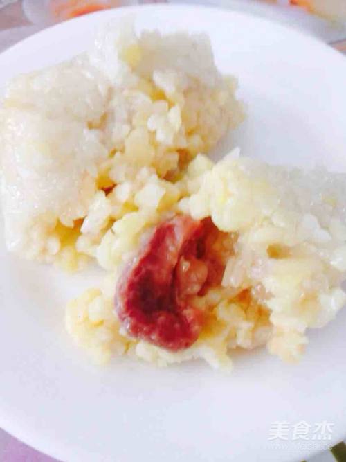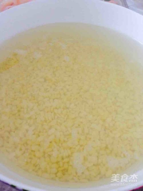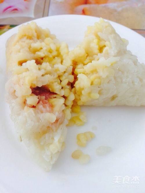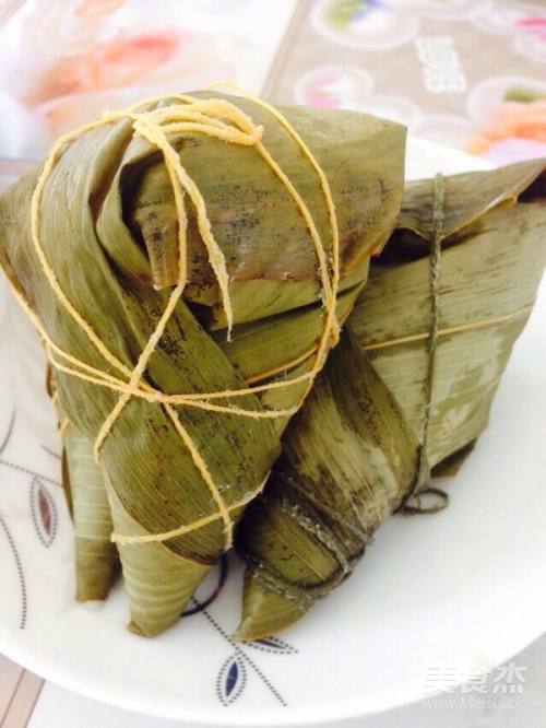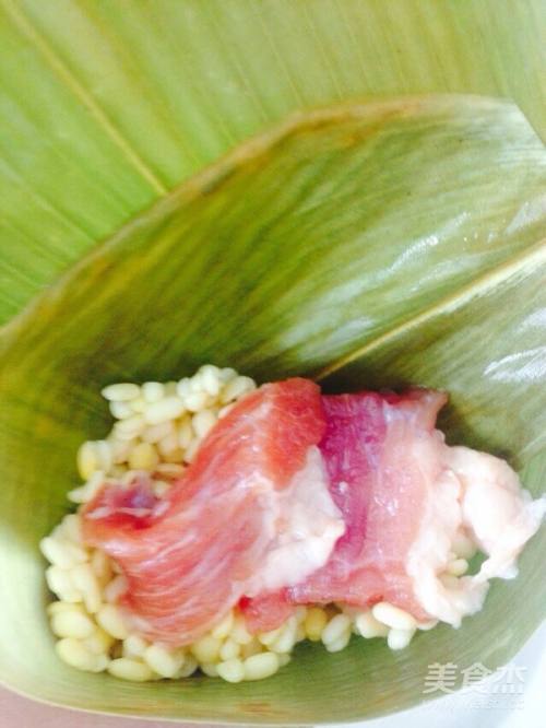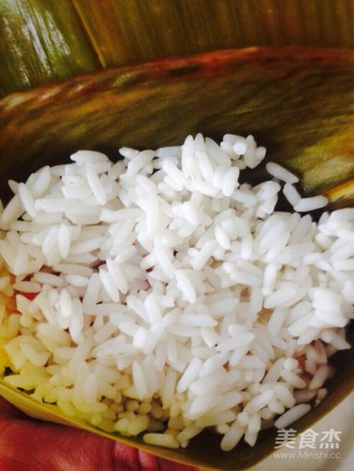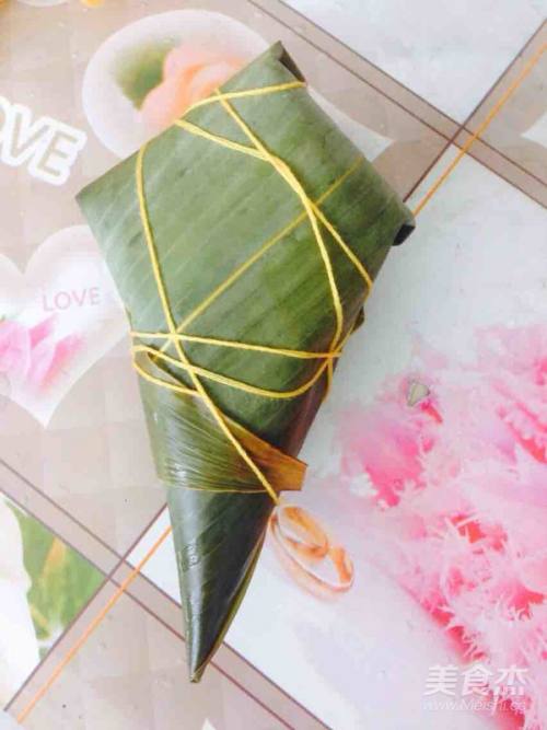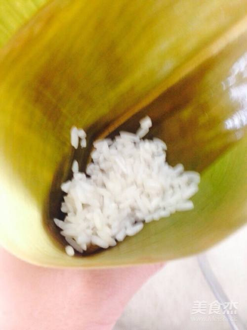 粽叶用开水浸泡一个小时以上,洗净,如图:卷起